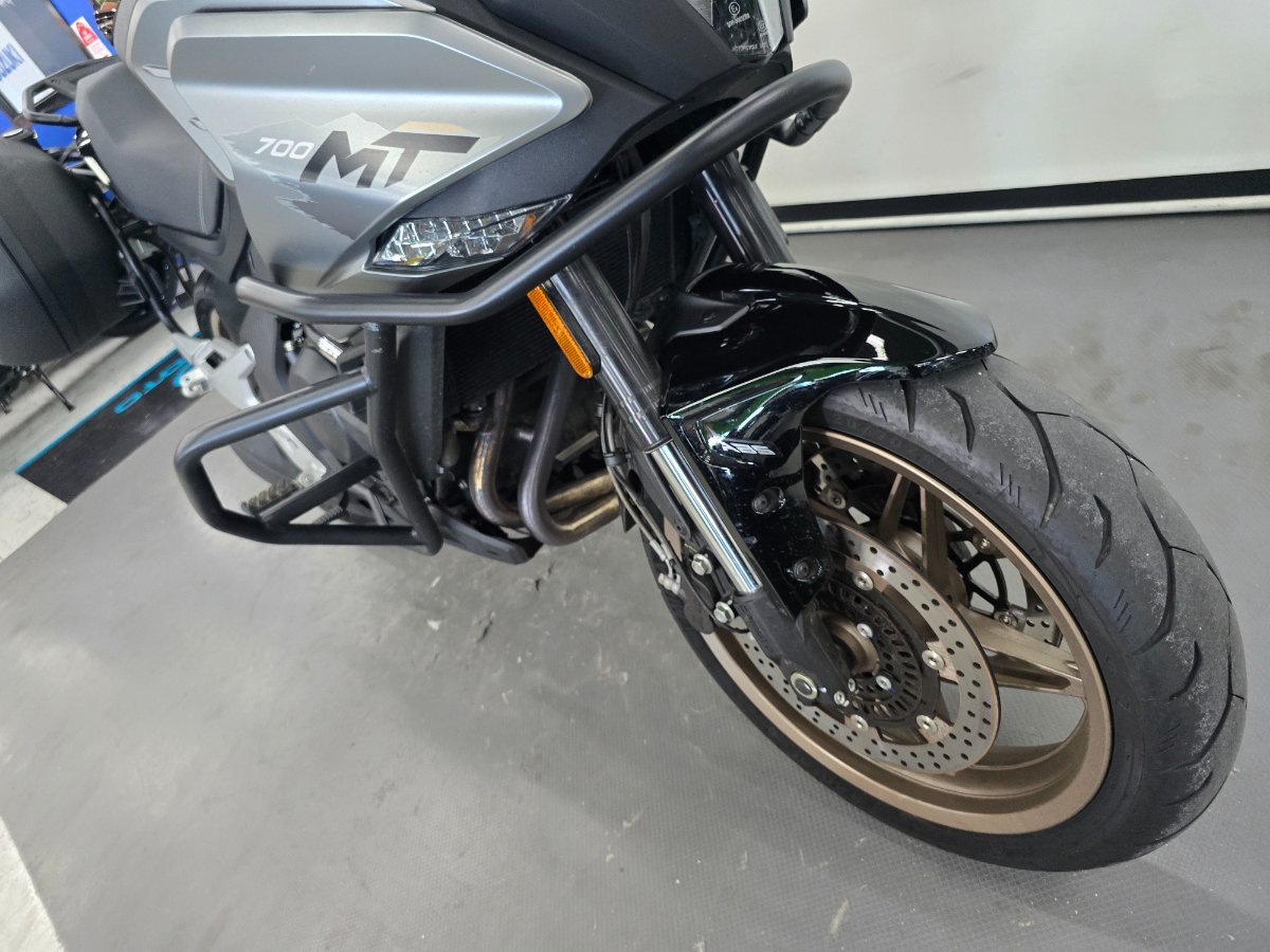 2023 CF Moto 700 MT^^This MT presents in near-new condition with very low kilometres and is an excellent example of a well-kept, versatile adventure-touring motorcycle. It has clearly been looked after and is ready to ride away with nothing to spend. Powered by the proven 693cc parallel twin engine, the 700MT offers smooth, usable power that?s ideal for commuting, weekend rides or longer touring adventures. The upright riding position, comfortable seat and wind protection make it a relaxed and confidence-inspiring bike for riders of all experience levels, whether you?re riding around town or heading off on a road trip. This bike comes fitted with quality SHAD panniers, adding practical storage and making it perfectly set up for touring or everyday use. The first service has already been completed, giving peace of mind to the next owner, and it comes with the original books and full set of keys.With its low kilometres, near-new condition and useful extras already fitted, this 700MT represents outstanding value compared to buying new. If you?re looking for a capable, comfortable and reliable mid-capacity adventure bike that?s ready to go, this one is well worth inspecting.^^Located just 50 minutes from Brisbane's CBD. With the option for a 3-year parts and labour Mechanical Protection Plan with any Approved Used bike, a 49-point inspection and 2 days free exchange for peace of mind, there is no better place to buy a Used Bike in Australia. plus access to Australia?s largest resource of Motorcycle Finance ,with fast, friendly, personal service either in our stores , from